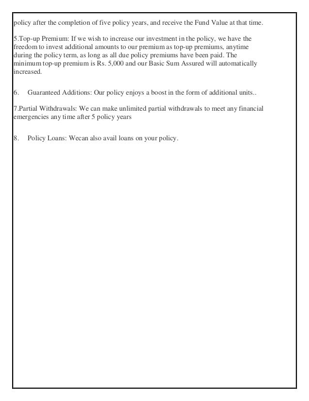Loan, Partial Withdrawal, Dividend Withdrawal & PUA Surrender ...